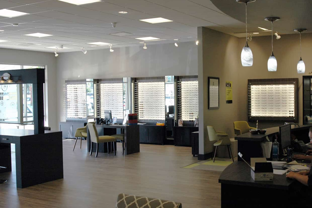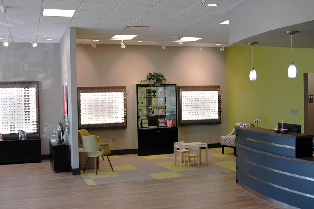 Interior remodel of an existing 3,843 sf space located in Berea, Ohio. The 1,700 sf retail area consists of women, men, and children’s eyeglass displays. Additionally, a children’s play area, lounge, and coffee station were added to complete the store’s family feeling. Smaller one-on-one workstations offer the chance to talk and adjust eye-wear with the staff. Customers are encouraged to grab a coffee and sit a bit in the lounge.