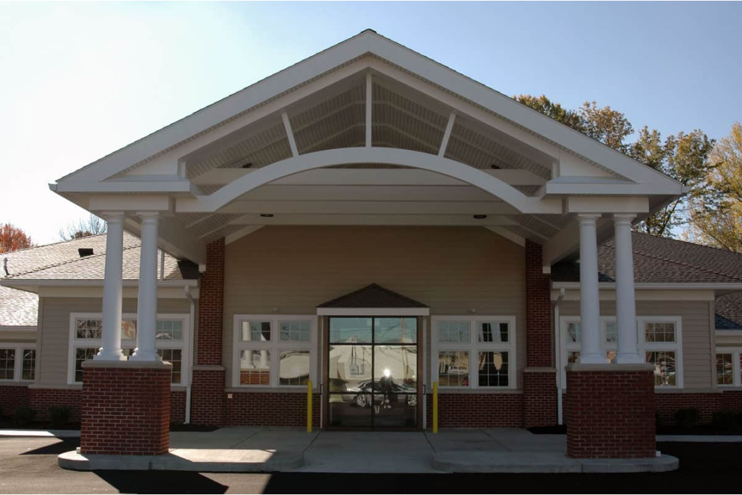 The drop-off porte cochere was designed for extra tall ambulance service. Site work included; parking, enclosed trash containment, and landscaping.