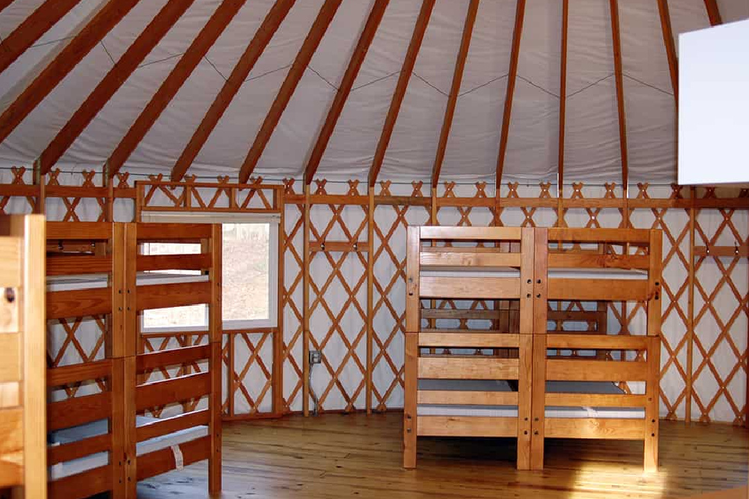 A 707 sf four-season tent structure located on the campground of the Girl Scouts of North East Ohio. The Yurt houses a modest kitchen, toilet rooms, and sleeping area, enough room for 16 girls and 1 adult.